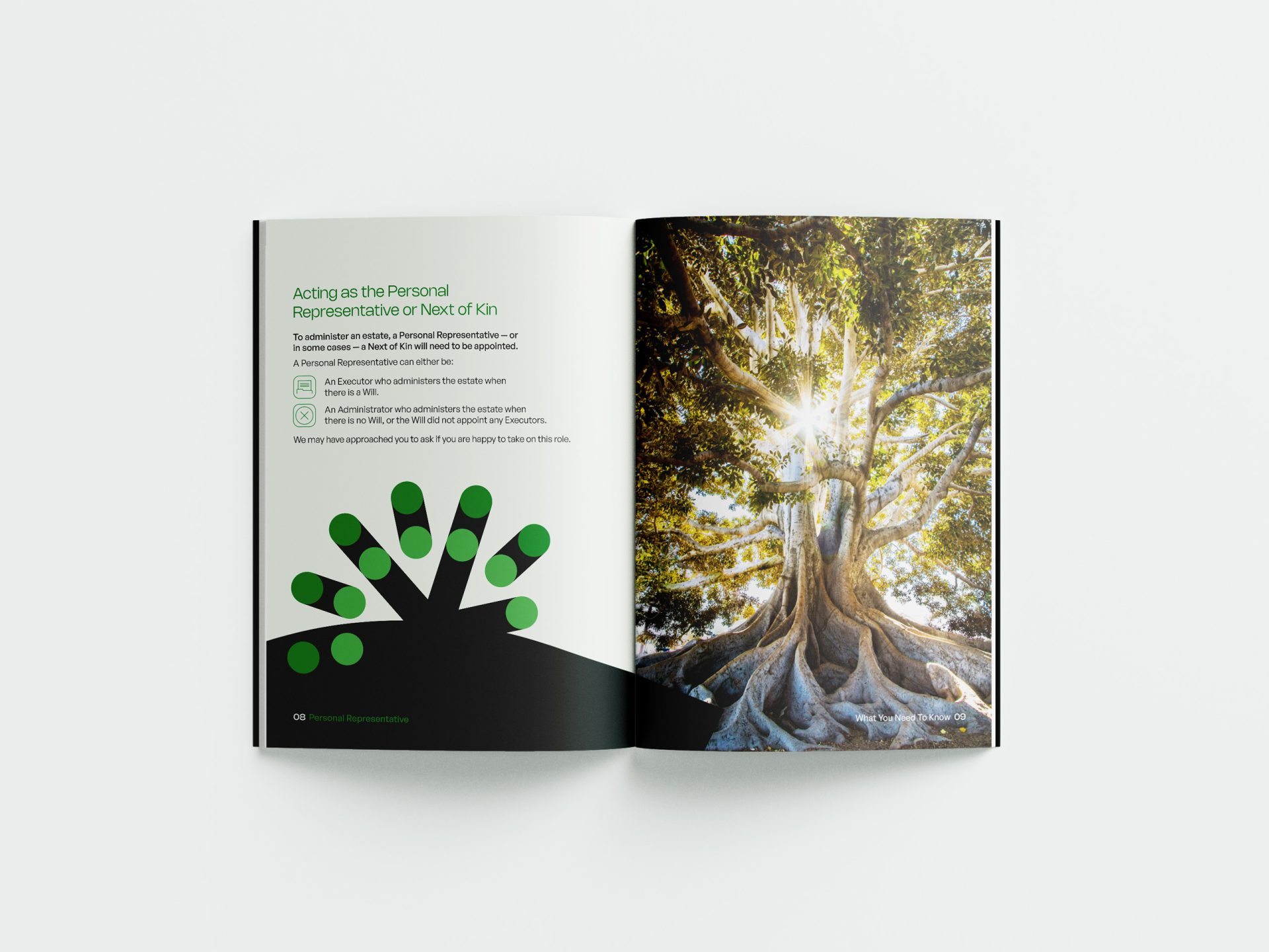 We began with their existing ‘tree’ mark — a symbol that had served them well but needed to evolve. We utilised this recognisable element, augmented it and used it as the foundation for a stronger, more confident visual language.